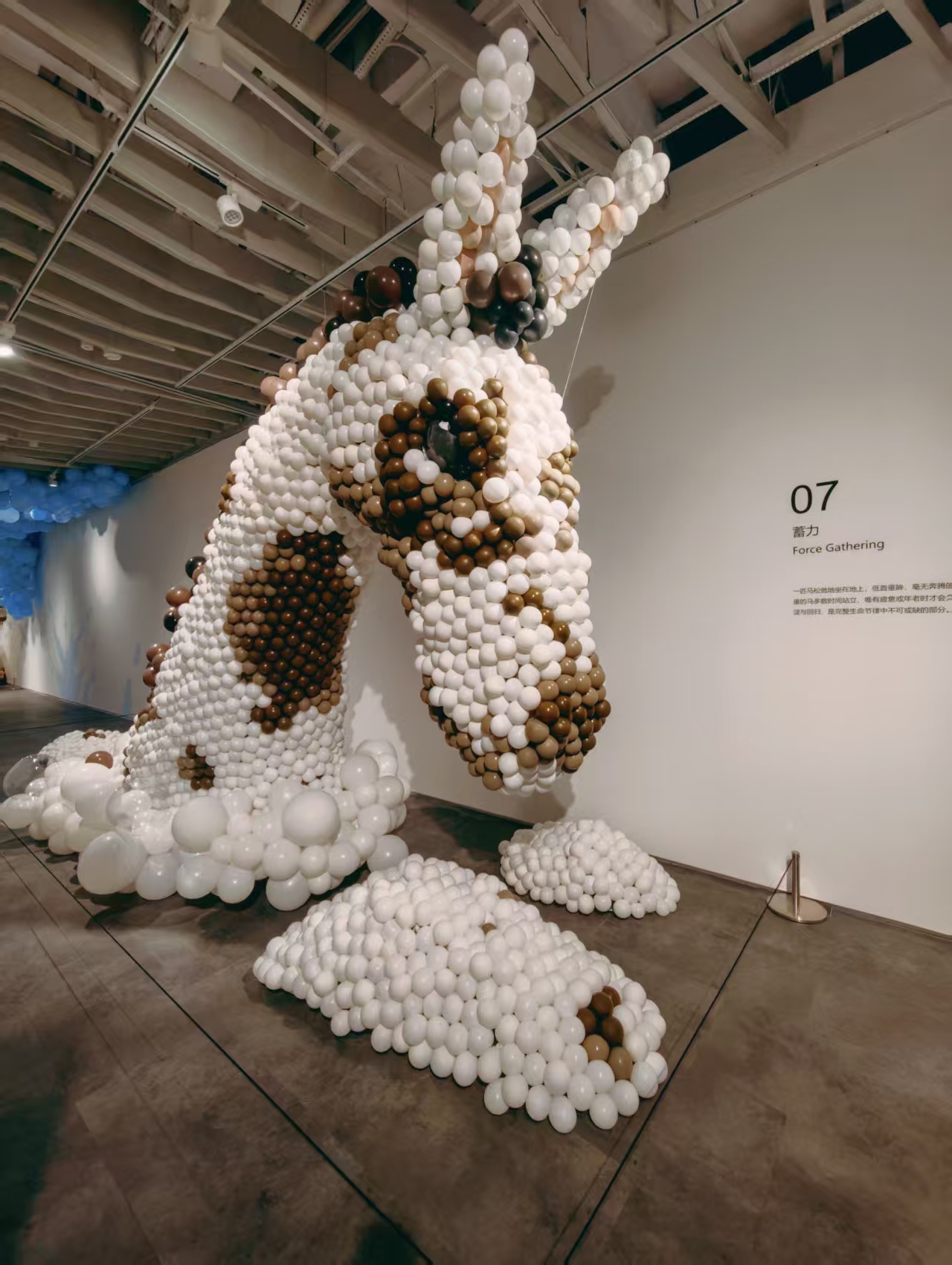 線性雕塑藝術家博仔Bernie攜手打造,用數(shù)萬只氣球重構童年記憶:撒嬌的貓咪、搖尾撲來的柯基、神秘的驚鴻一瞥……氣球的輕盈質感,讓易逝的記憶變得觸手可及。