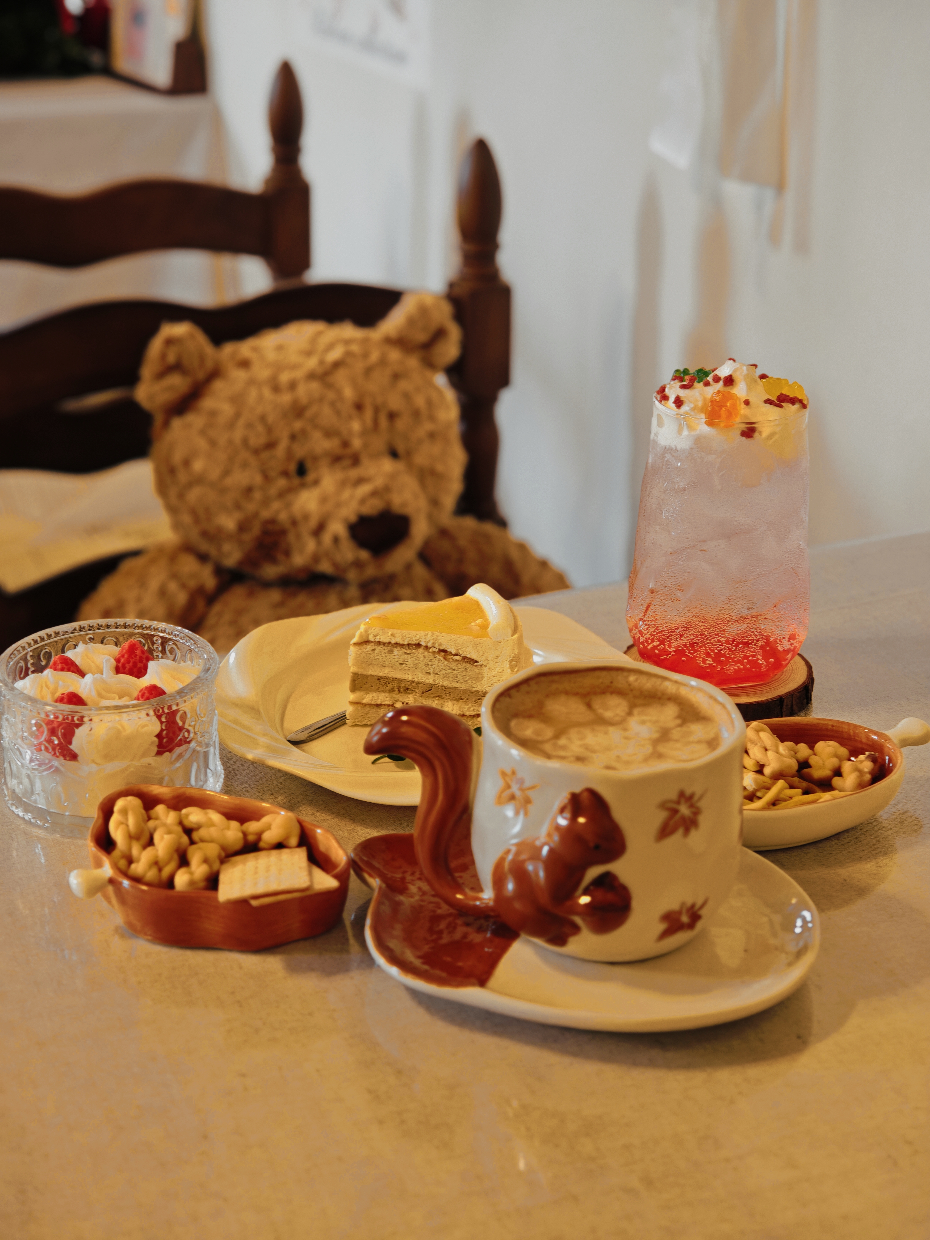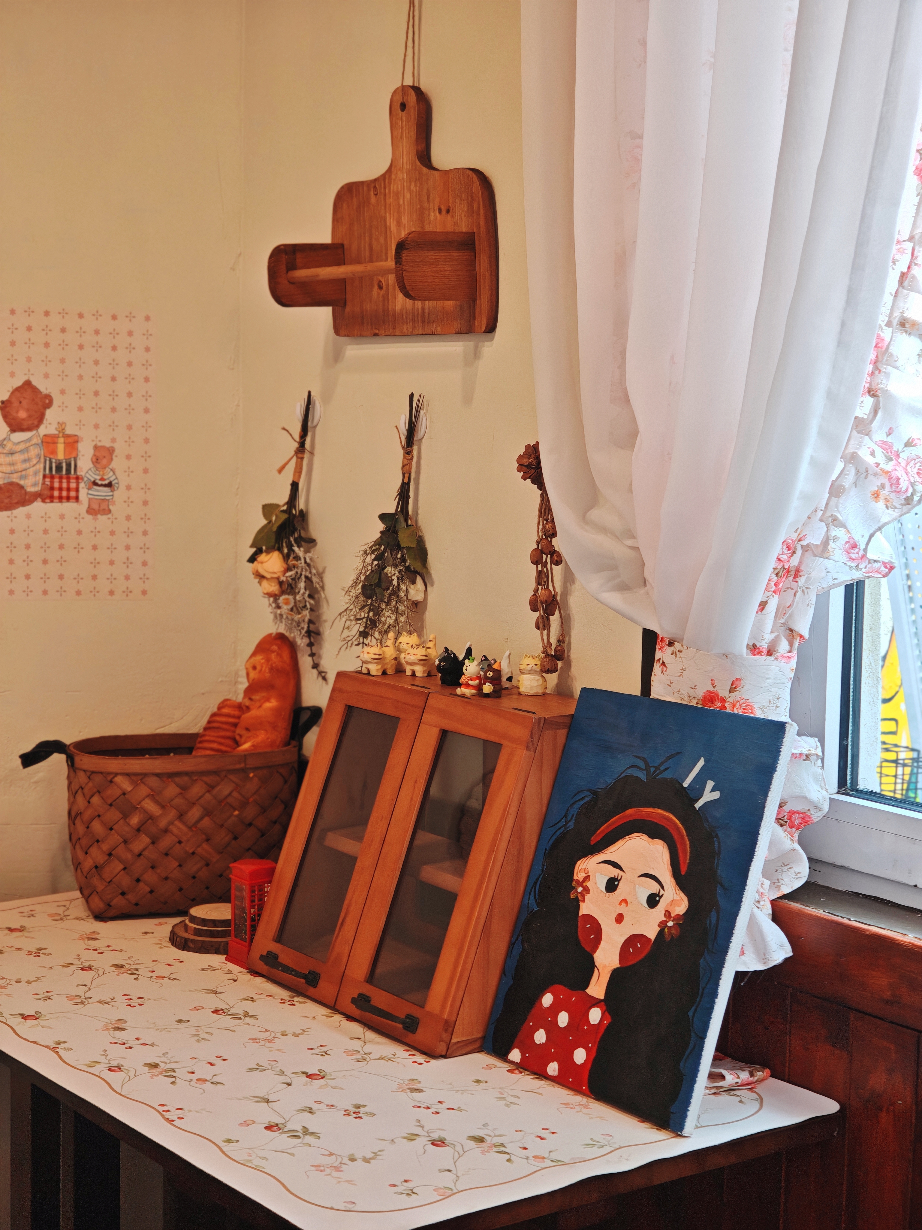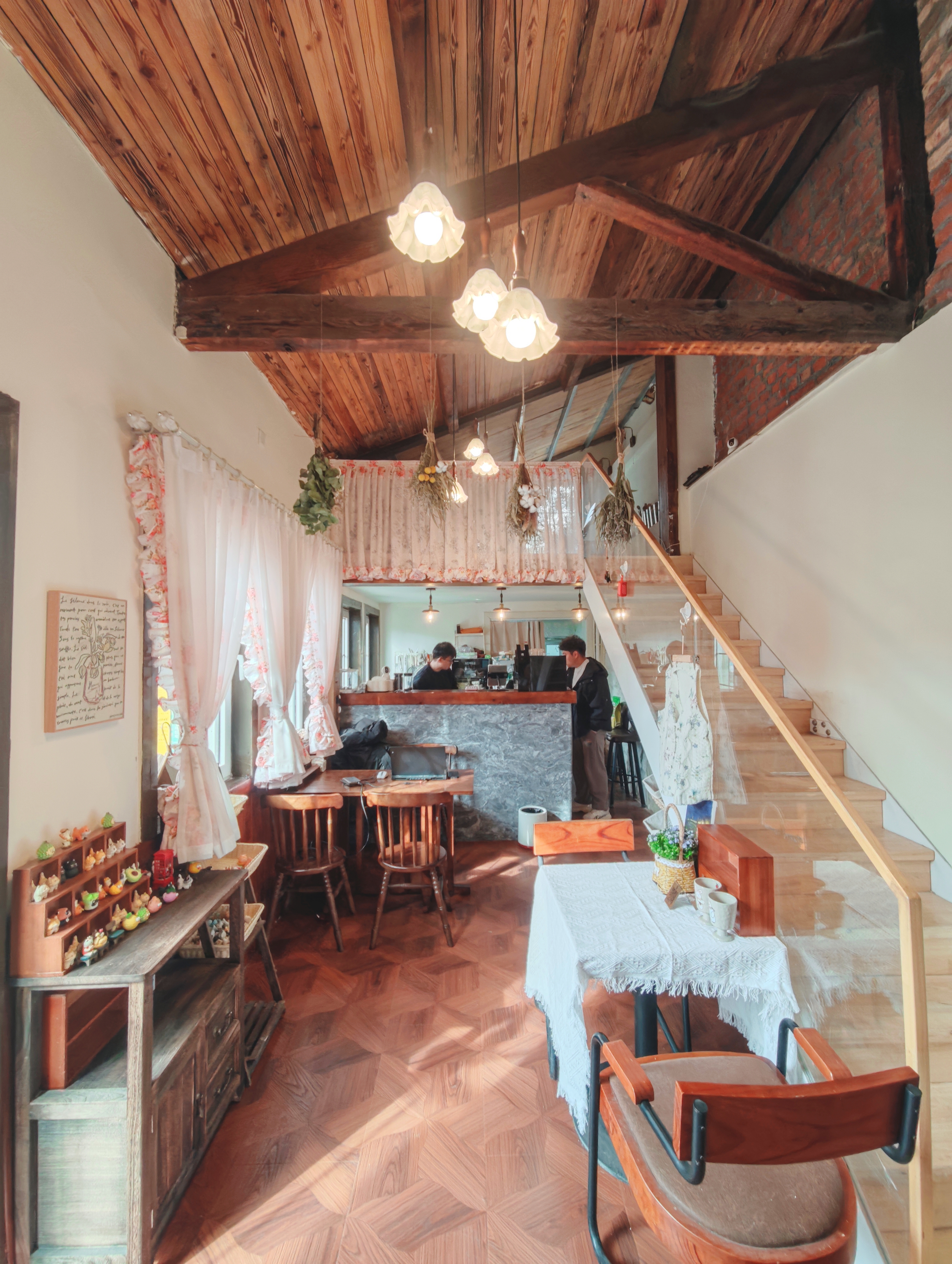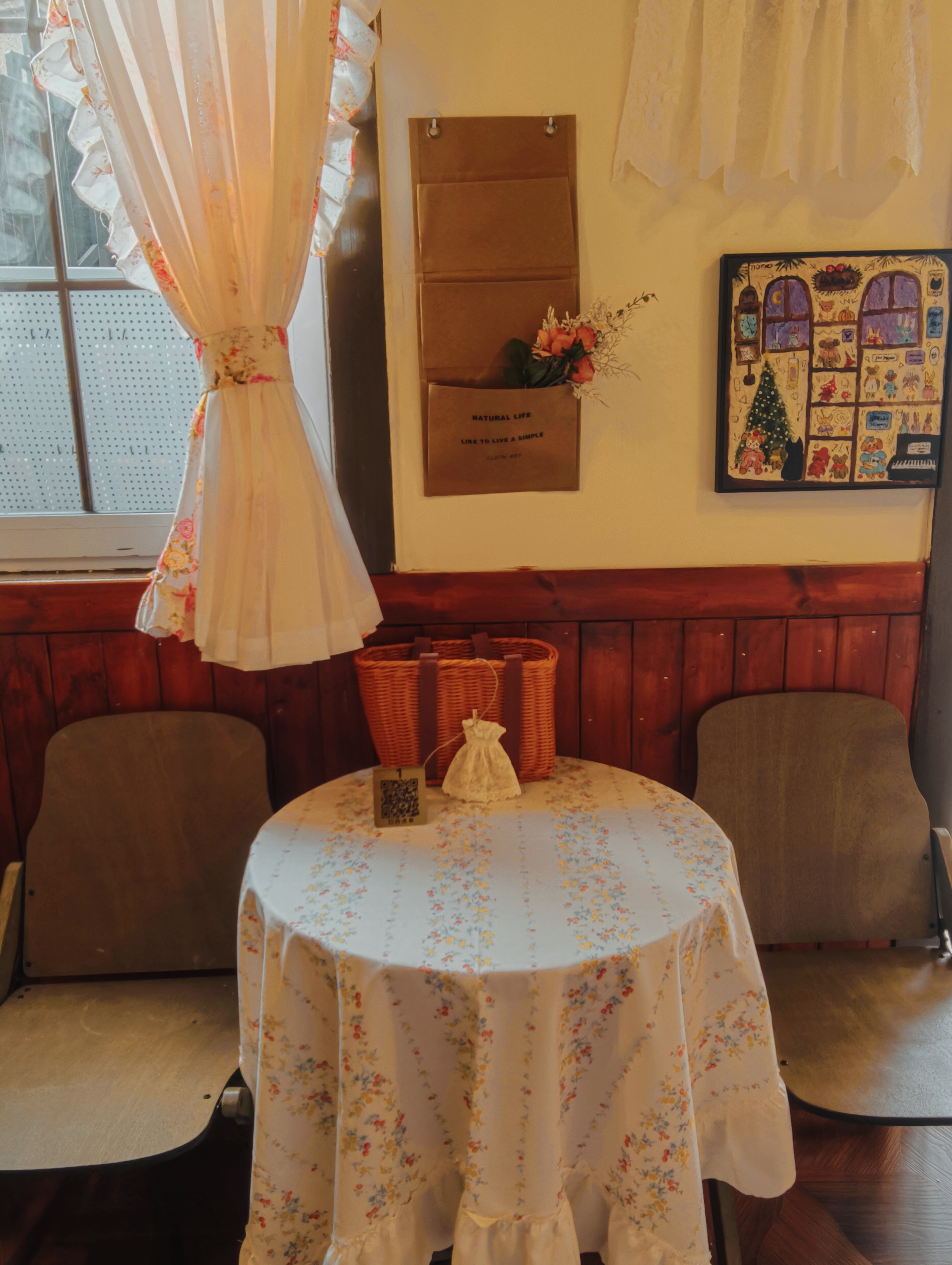 開在漫畫街內,整體風格可可愛愛,原木風×暖黃光完美融合,營造出溫馨又愜意的氛圍,碎花田園風的點綴,更是為其增添了幾分靈動與俏皮。