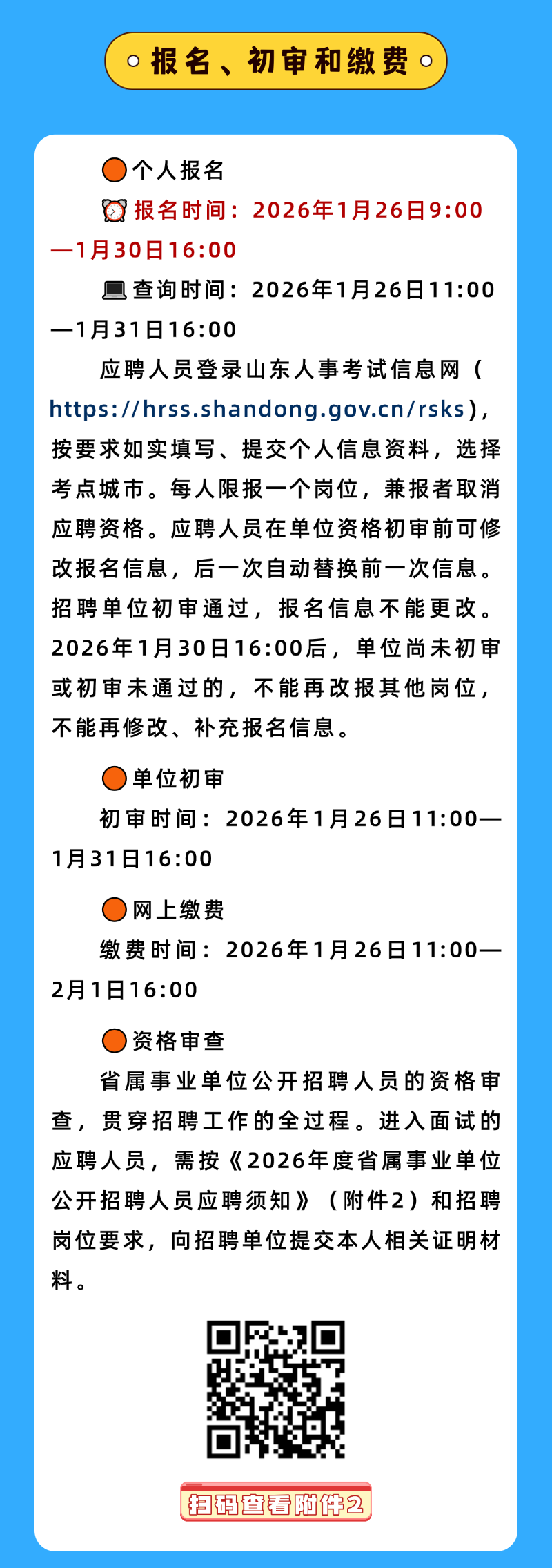 今起報名??青島有崗??2026年度省屬事業(yè)單位公開招聘