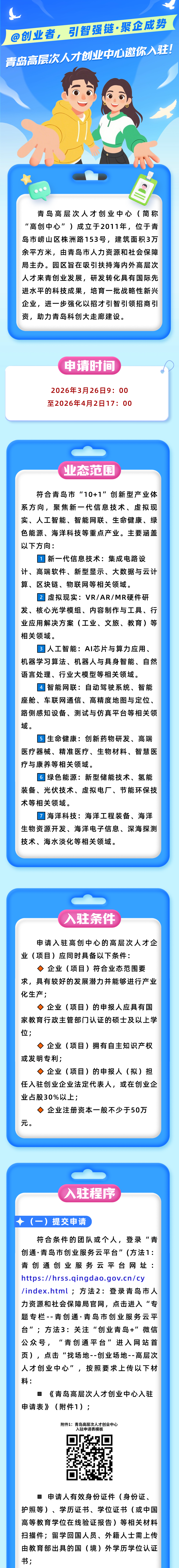 @創(chuàng)業(yè)者,引智強(qiáng)鏈·聚企成勢 青島高層次人才創(chuàng)業(yè)中心邀你入駐!