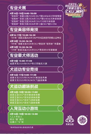1.專業(yè)賽事矩陣:同步落地 CKU 純種犬賽、WCCF+WCF 雙國際貓賽、CKU寵物美容賽,覆蓋犬、貓、水族全品類競技。