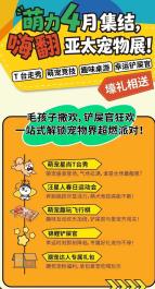 · 萌寵星尚 T 臺秀、汪星人春日運(yùn)動會(飛盤、障礙挑戰(zhàn))、巨型萌寵飛行棋。
