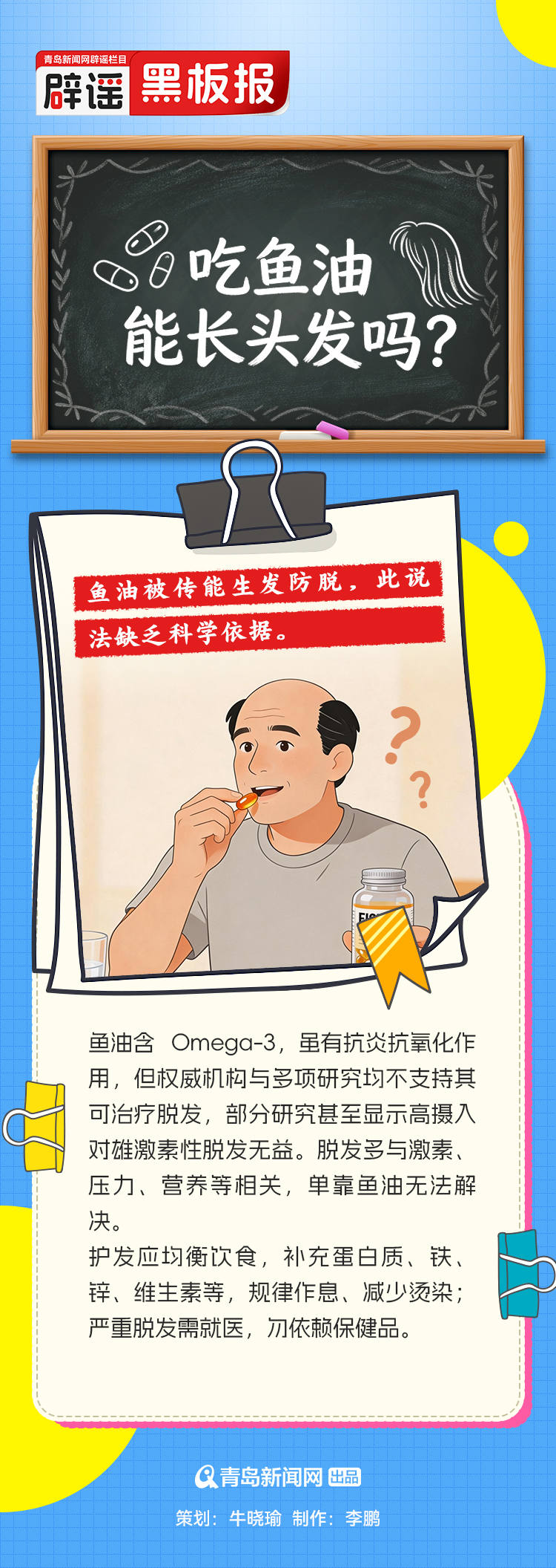 【辟謠黑板報】吃魚油能長頭發(fā)嗎?