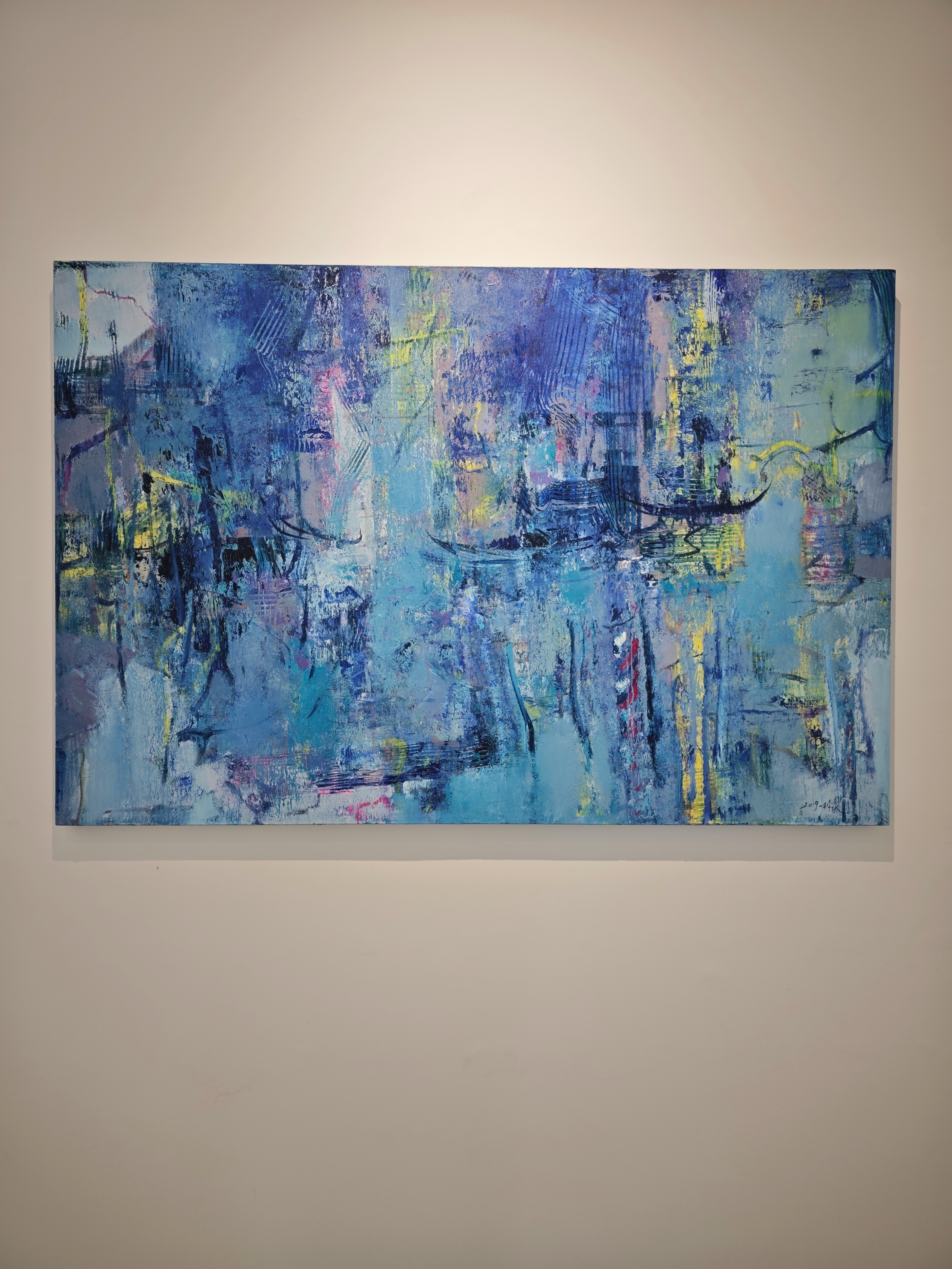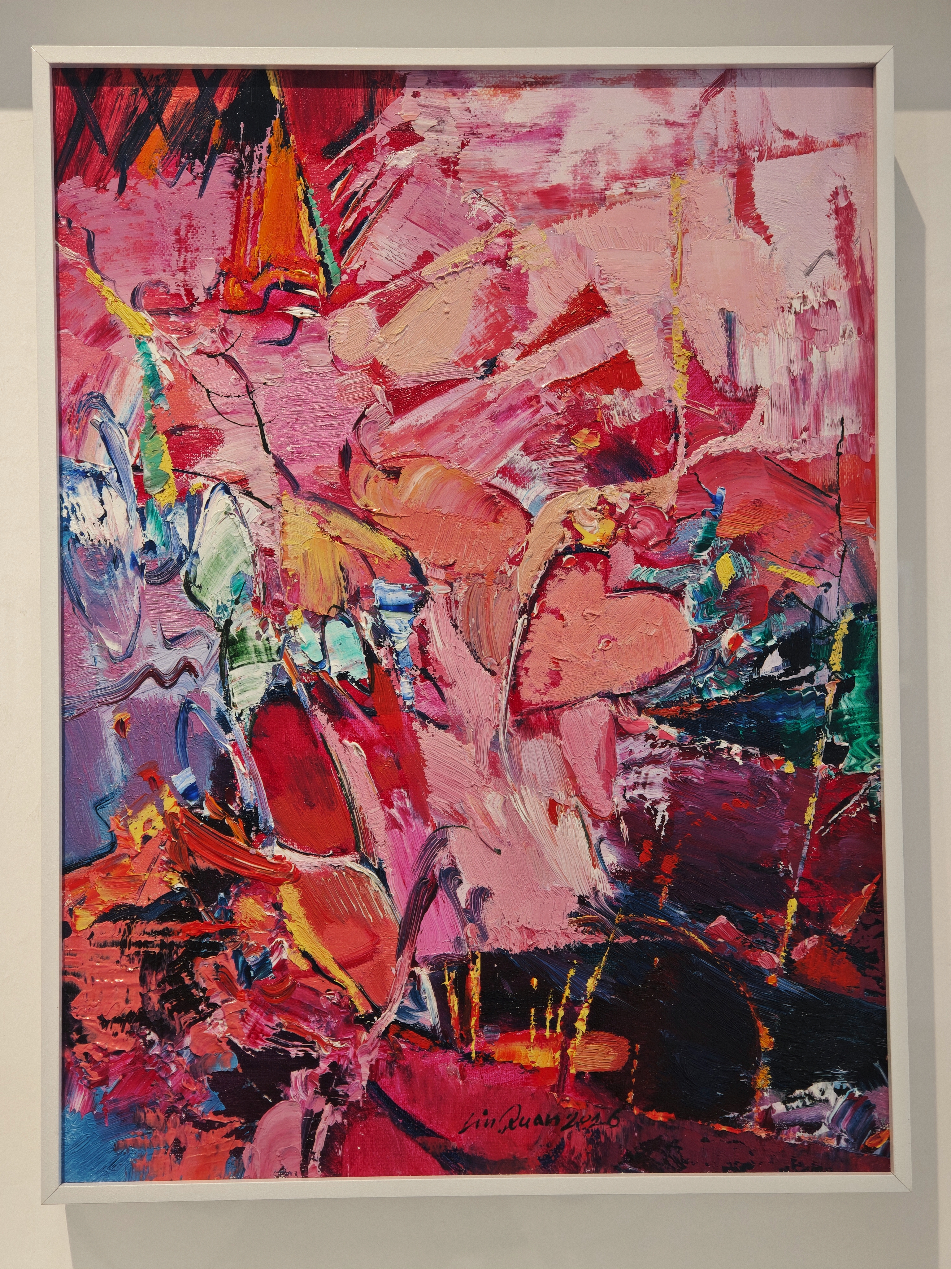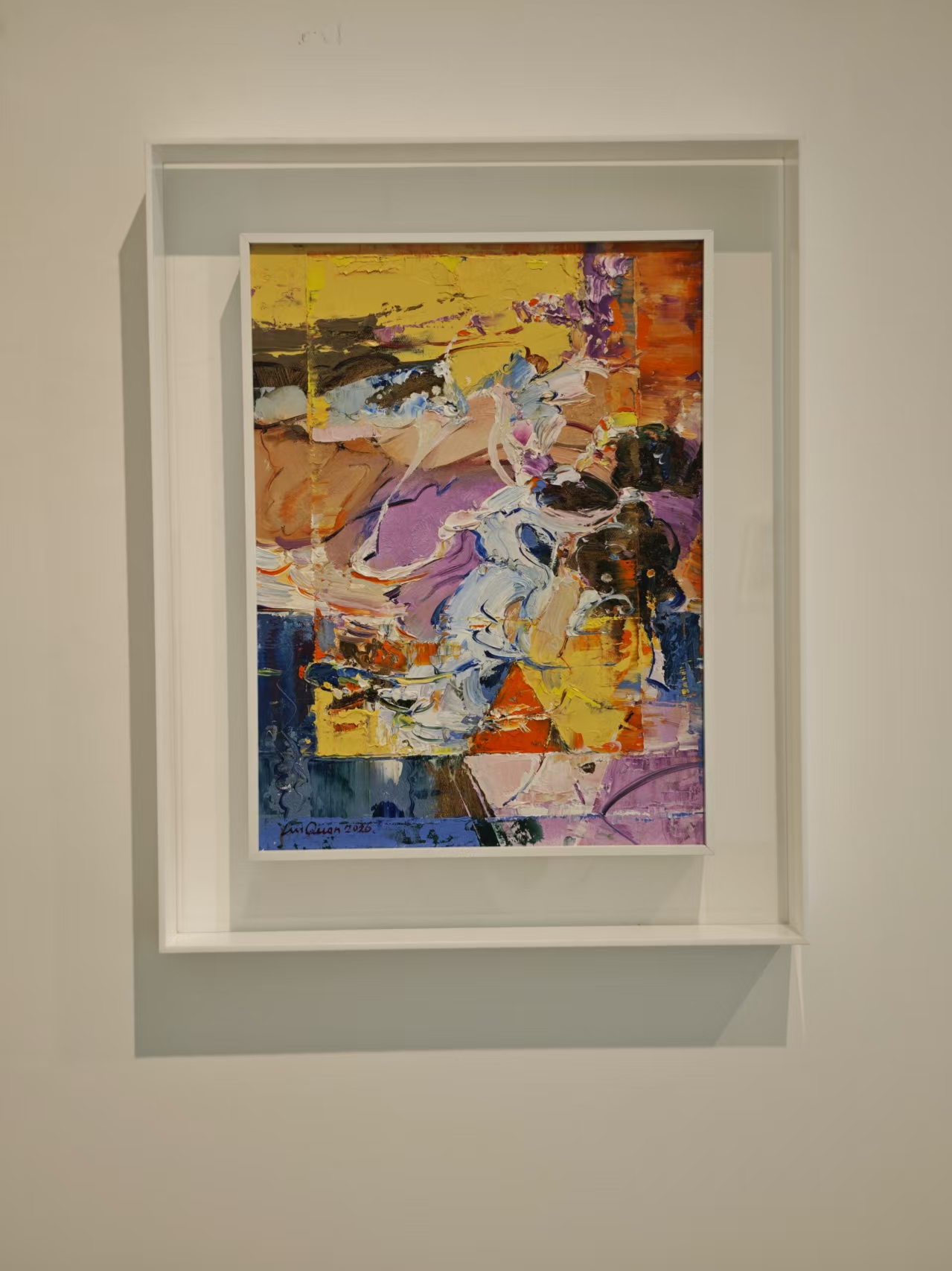 厚薄交替的色層、離合的節(jié)奏、奔放的旋律——每一幅畫都是一場視覺的交響樂。色塊相互滲透卻保持獨(dú)立,像極了人與人之間微妙的關(guān)系:親密,但自由;交融,卻各自完整。