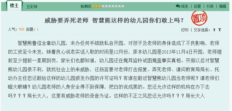 智慧熊魯信含章幼兒園,未辦任何手續(xù)就私自開園,對(duì)孩子及老師的身體造成了不良影響,老師的工資至今未發(fā),這樣的幼兒園,您敢讓孩子去嗎?...... [詳情]