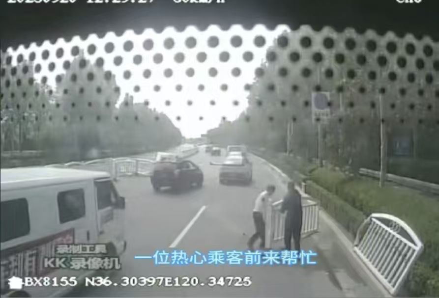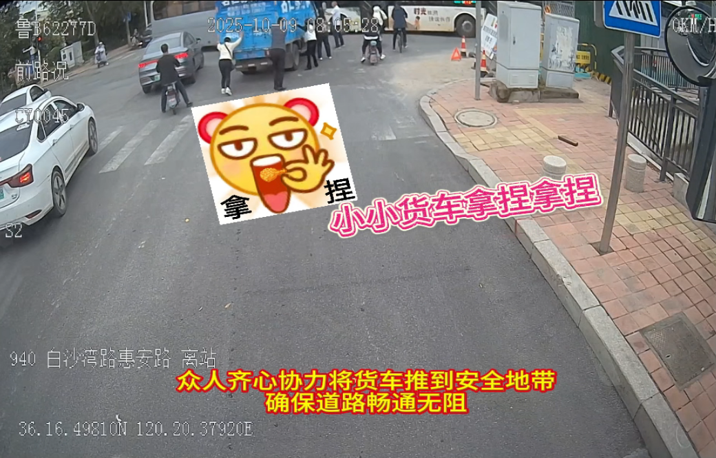 貨車突發(fā)故障阻礙交通,城陽巴士駕駛員和乘客協(xié)力清障