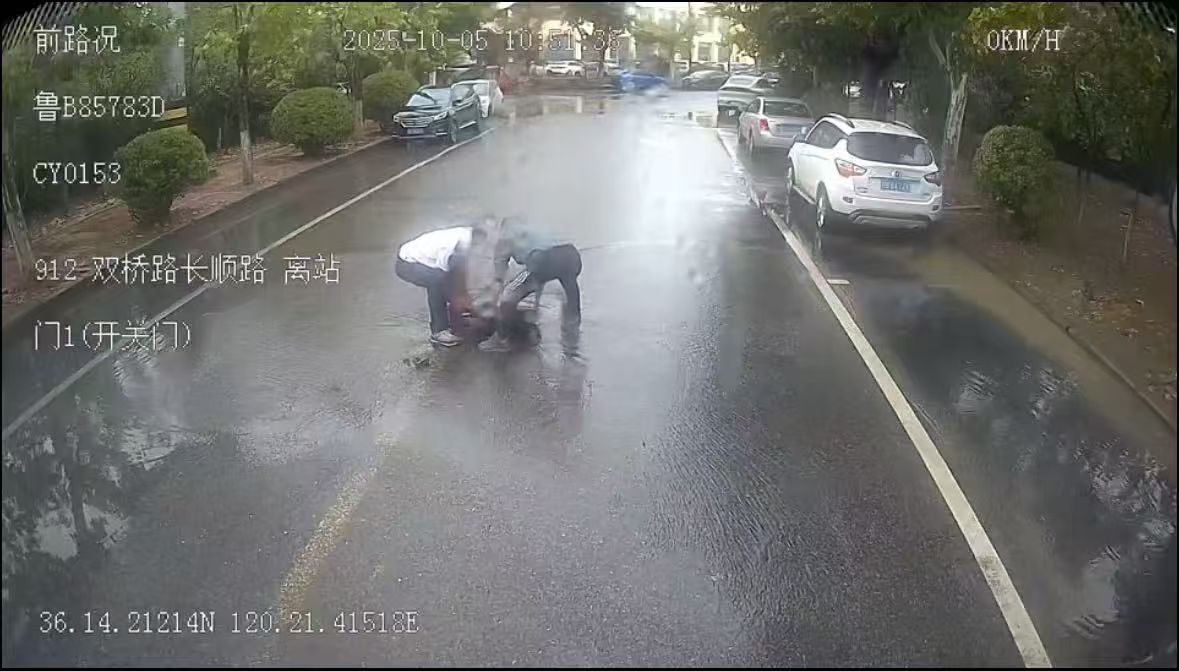 驚險!城陽巴士司機乘客齊出手,化解古力蓋“路障”危機