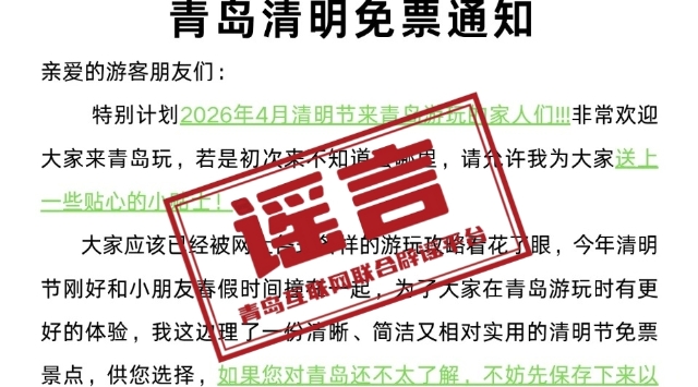別信!網(wǎng)傳“青島清明免票通知”系虛假信息