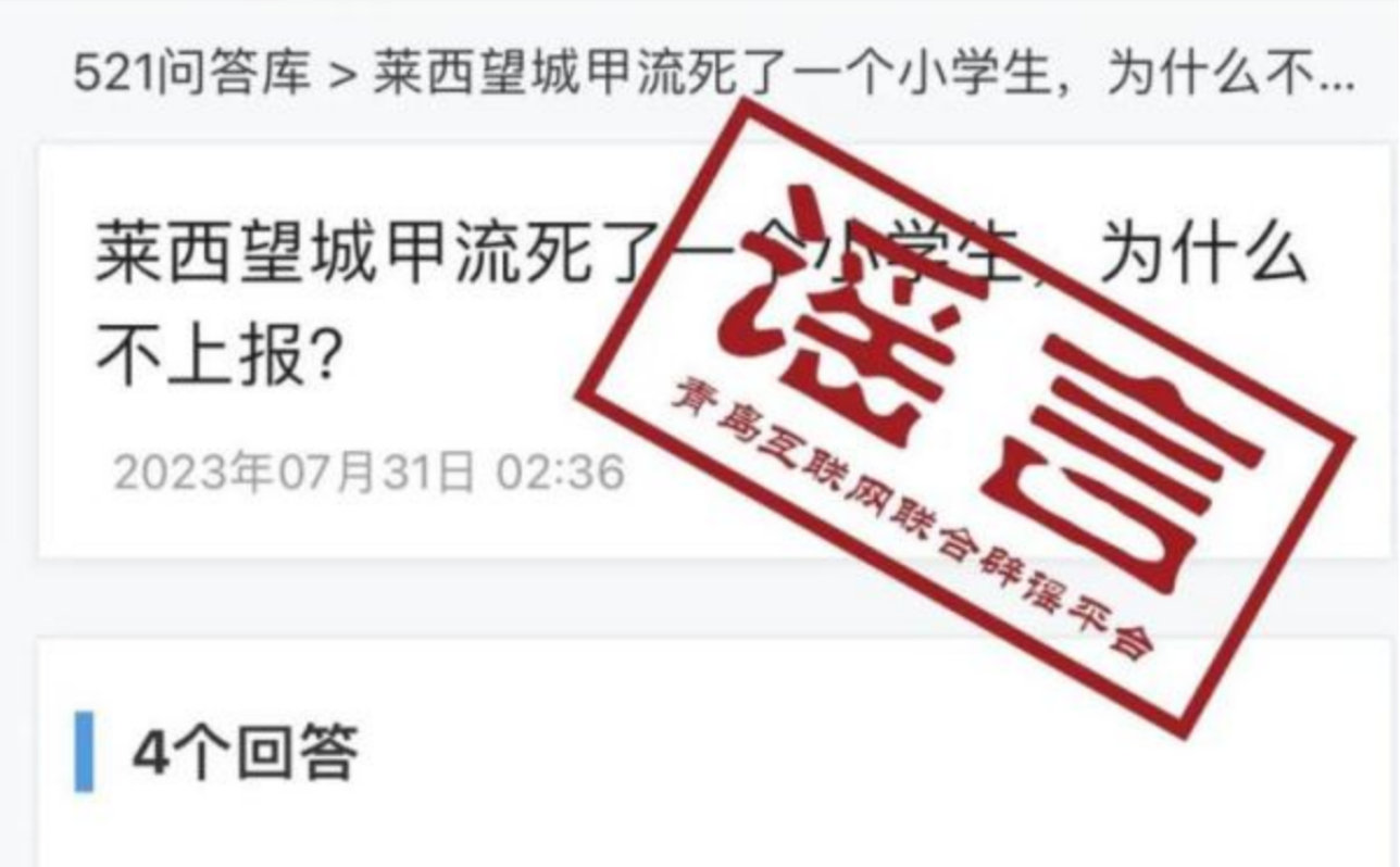 青島一地小學(xué)生因甲流死亡?官方辟謠