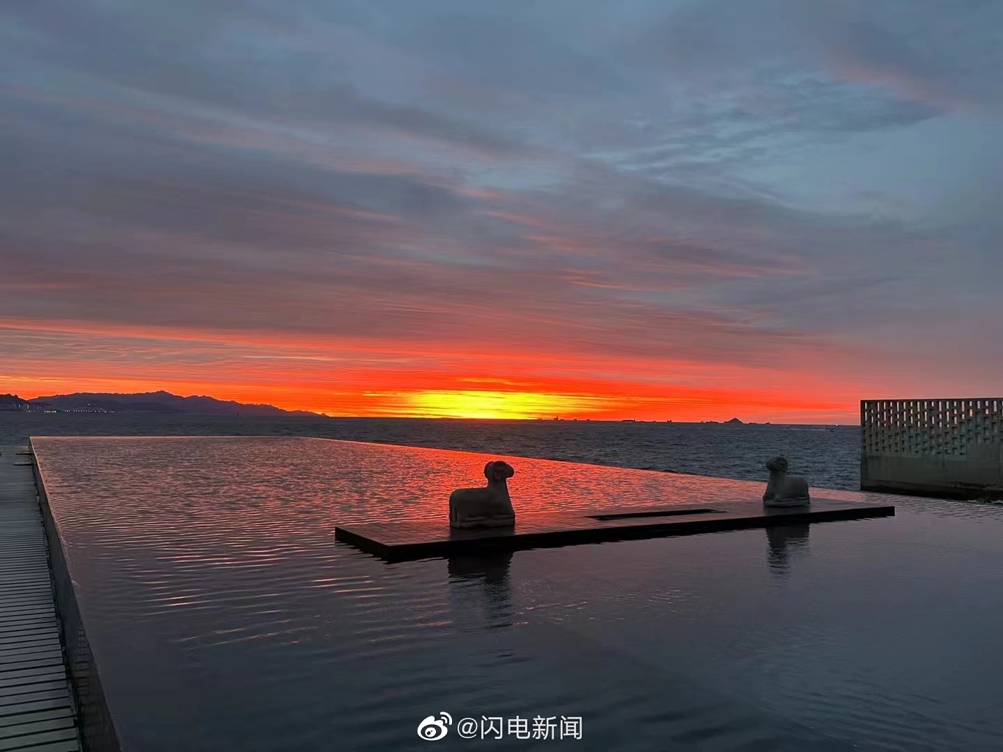 冬天沒有色彩?來(lái)看一場(chǎng)絢麗的海上日出