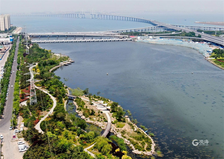 夏日里的一抹清涼綠,航拍李村河入???/a>