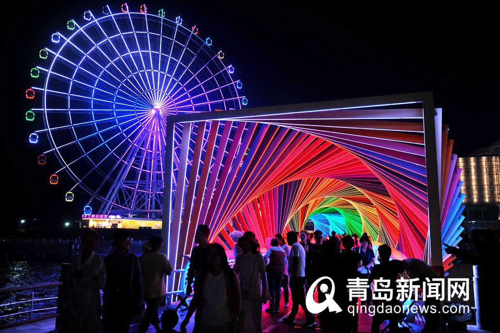 國慶節(jié)夜晚,青島網紅彩虹橋又火了!時尚打卡新方式