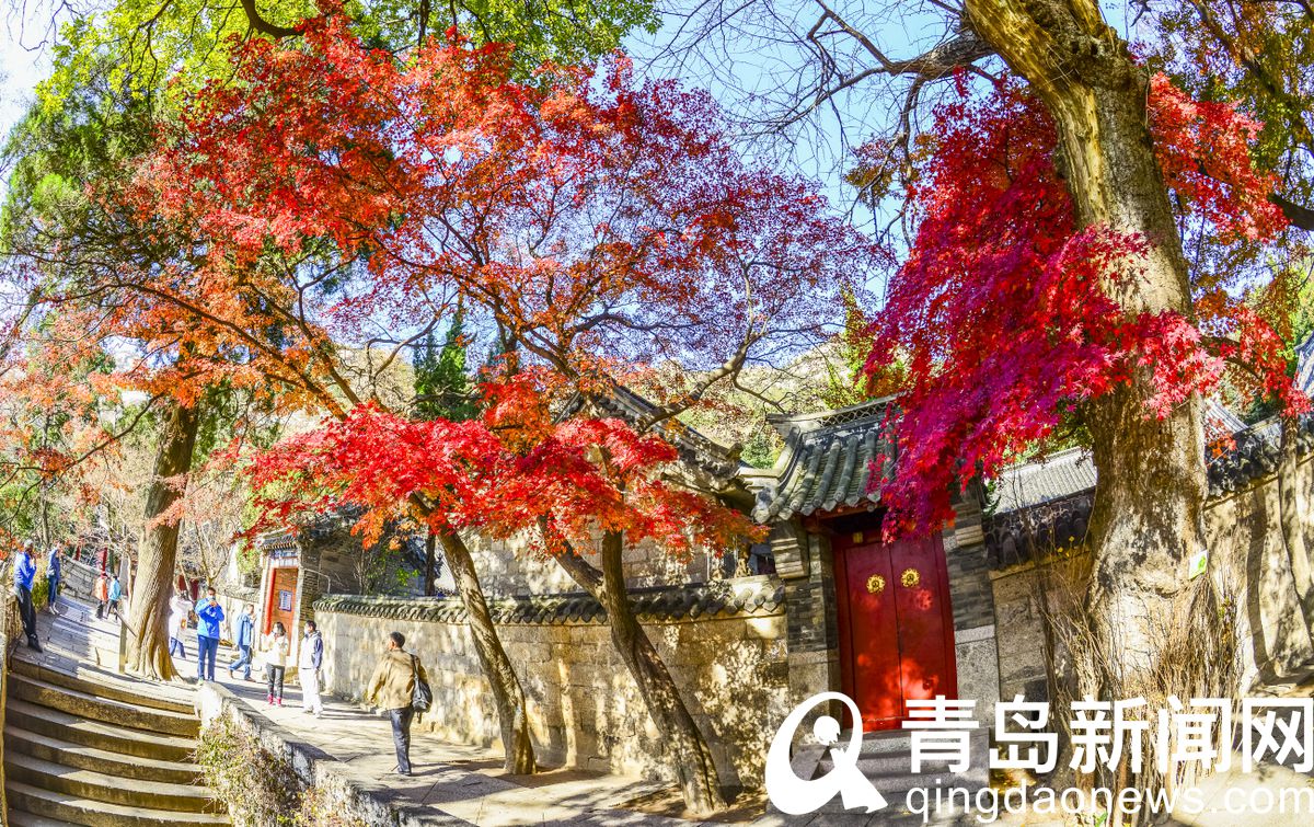 【大片】嶗山太清宮楓葉正紅 在那里可以欣賞冬天里的秋天