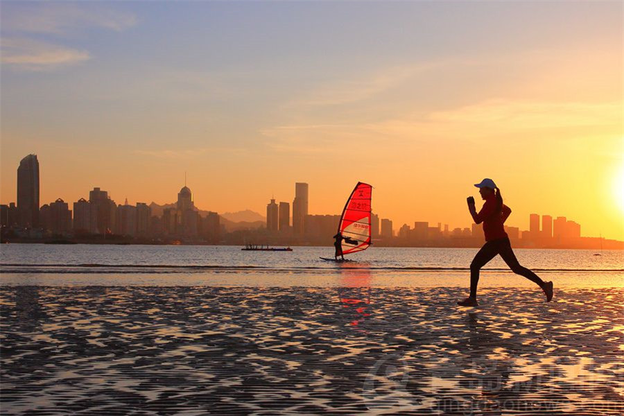 【城市大片】朝霞輝映生機勃勃 青島海濱的早晨令人心動