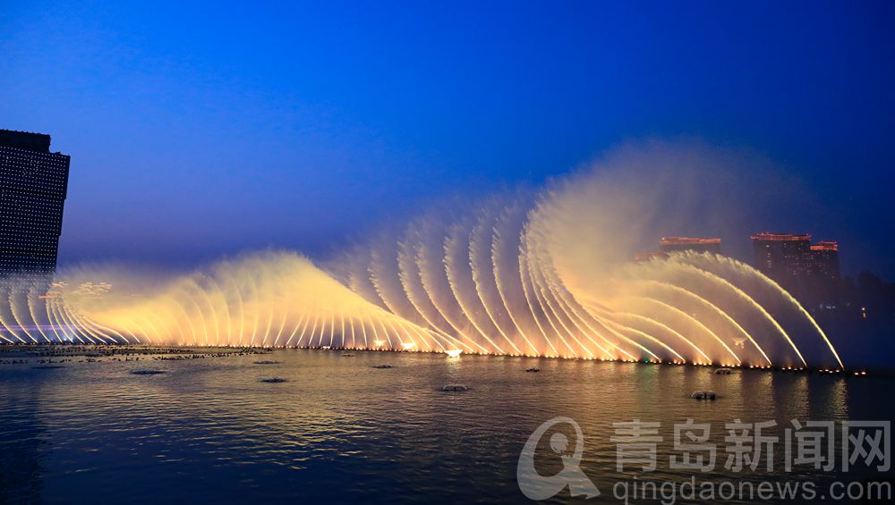 【城市大片】青島西海岸城市陽臺音樂水景秀 這個大噴泉真酷