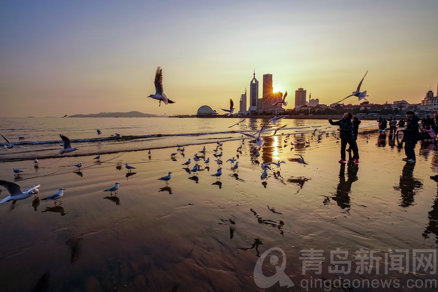 冬日早晨 在青島來一場令人振奮的“夸父逐日”
