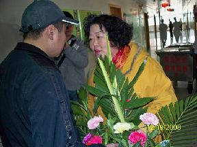 安大姐送來鮮花和捐款祝福新人