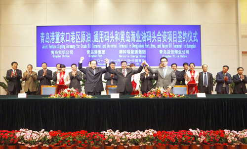 青島港董家口港區(qū)原油、通用碼頭和黃島海業(yè)油碼頭合資項目簽約儀式隆重舉行