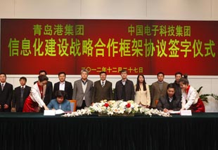 青島港與中國電子科技集團信息化建設(shè)戰(zhàn)略合作框架協(xié)議舉行簽約儀式