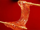 在兩根小棍上裹一小團(tuán)黃色的糖稀,晶瑩剔透的,在吃之前用小棍不停攪動(dòng),越攪越黏,還沒吃到嘴里甜味似乎就已經(jīng)在舌頭上蔓延了。