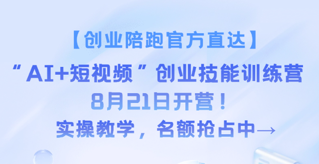 “AI+短視頻”創(chuàng)業(yè)技能訓練營,8月21日開營!實操教學,名額搶占中→