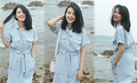好美!高圓圓海邊隨拍 秀發(fā)飄逸甜笑迷人(圖)